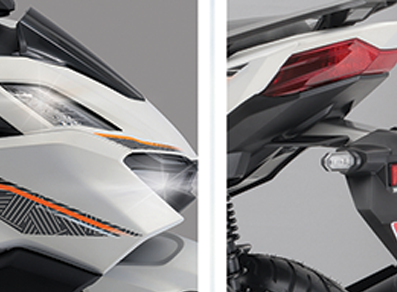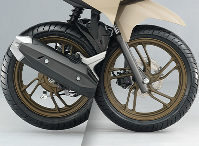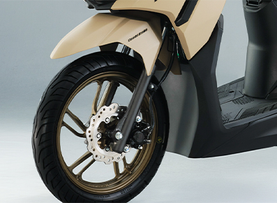 Our topnotch braking system, present in the front wheel of ABS Racing and ABS premium variants, helps prevent wheel lock for increased safety and stability especially at high speeds or on slippery surfaces.
