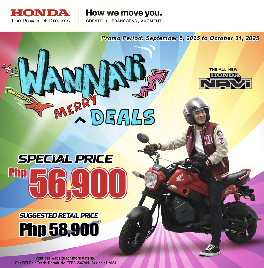 The All-New Honda NAVi is available in four (4) exciting colors, Shasta White, Patriot Red, Black, and Ranger Green R with a Suggested Retail Price of PHP 58,900 only.